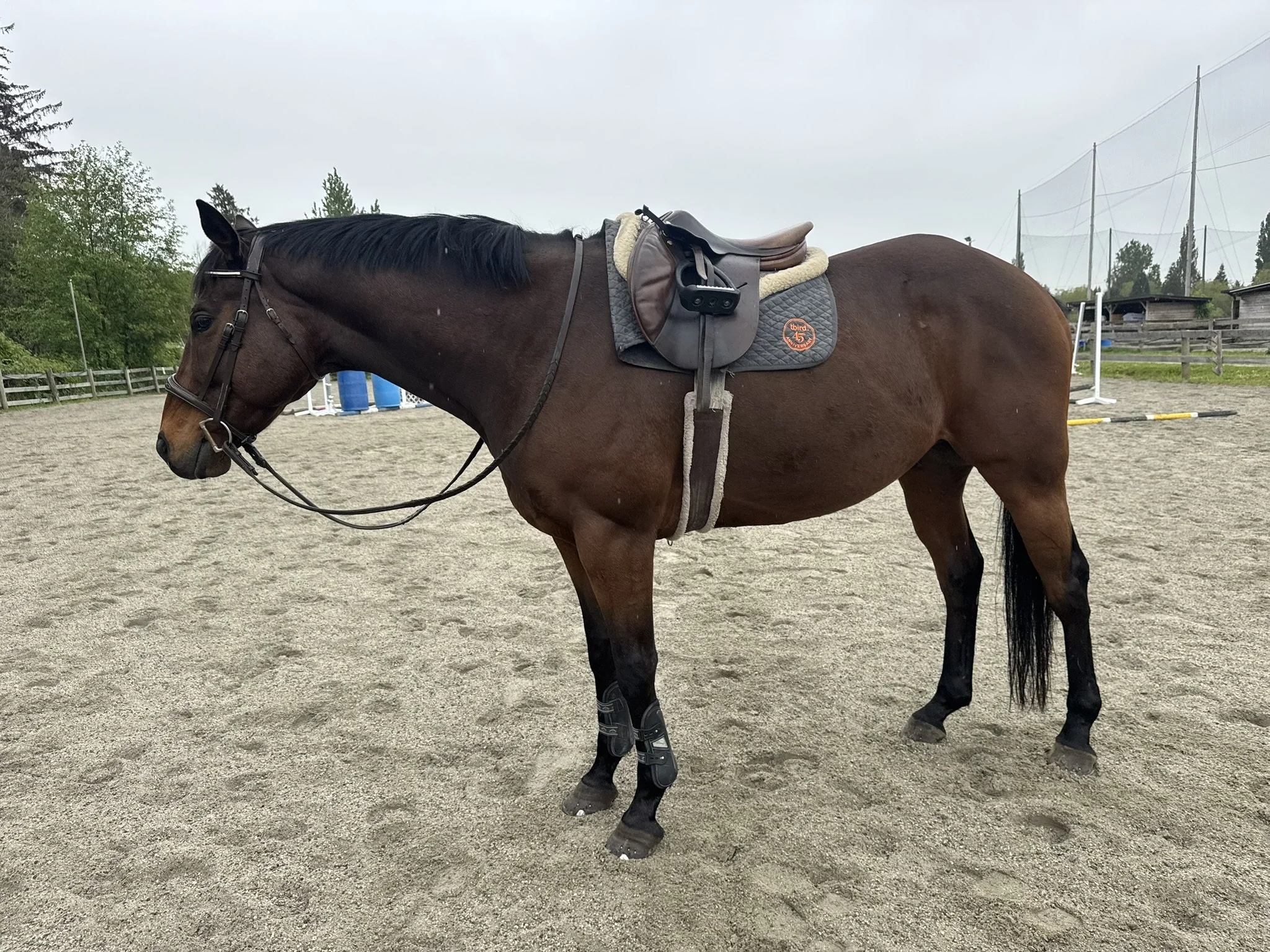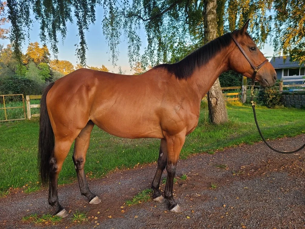 Beckham is kind and full of personality, Thoroughbred gelding that retired sound off the track and is looking for his next chapter. He goes nicely under saddle but does have some quirks he has been assessed as sound by a veterinarian. However, imaging has identified low grade kissing spine, and while he’s currently comfortable, future performance would likely require surgery if someone is interested in pursuing him as a riding project.